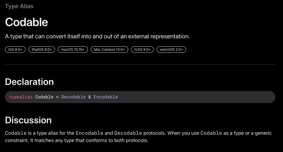 그렇습니다. Decodable와 Encodable을 합친게 Codable입니다.