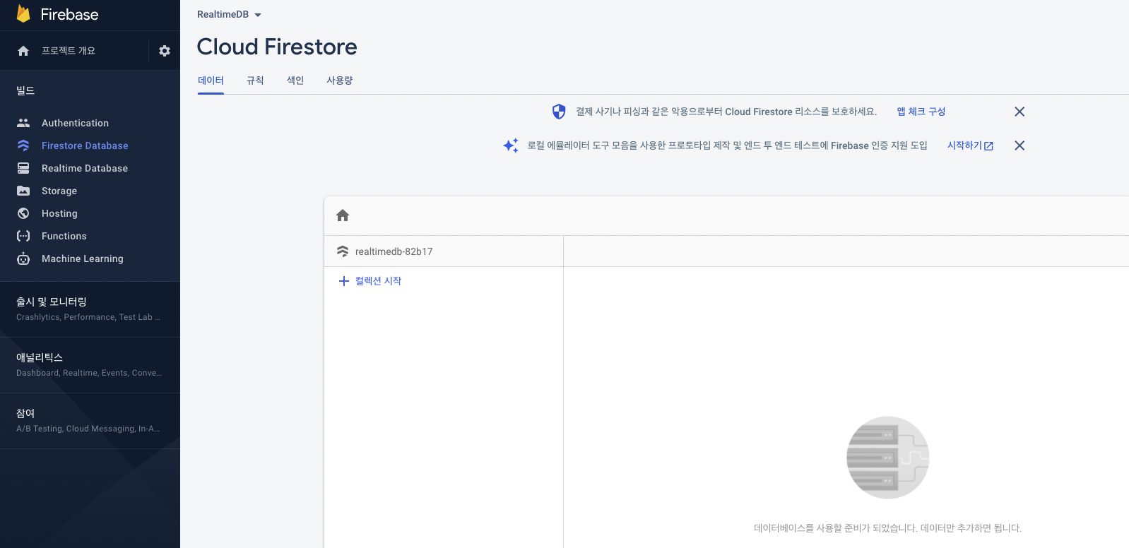 이번 글에서는 Firebase Cloud Firestore만 다루겠습니다.